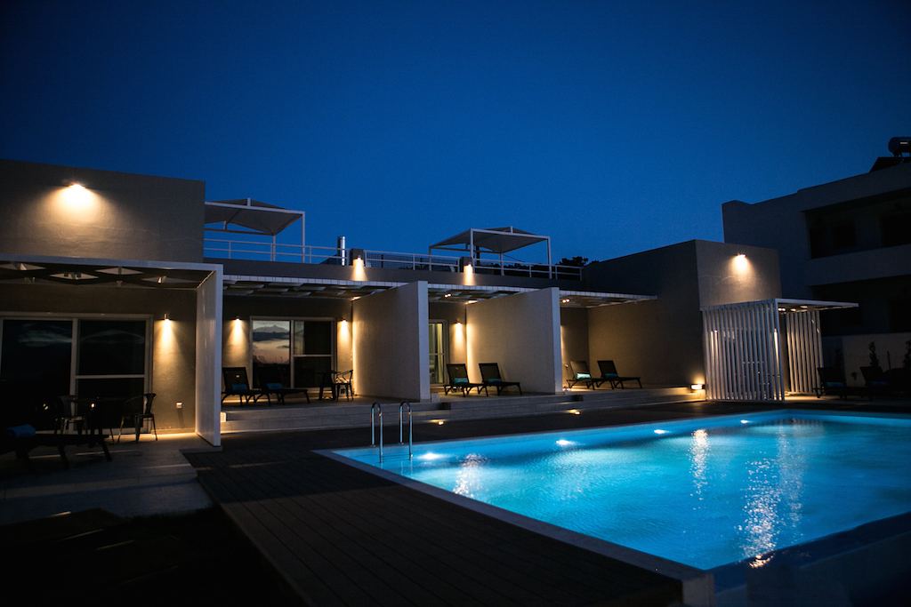 Από κάθε μπαλκόνι ή από την κοινόχρηστη πισίνα μπορεί κανείς να απολαύσει το ηλιοβασίλεμα με φόντο το απέραντο γαλάζιο του Ιονίου Πελάγους ή την απόλυτη ηρεμία της μαγευτικής ατμόσφαιρας. Σε κάθε μπαλκόνι μπορεί κανείς να βρεί την ιδιωτική του ξαπλώστρα και το δικό του τραπεζάκι με δυο άνετες καρέκλες για να απολαύσει το πρωινό του ή μια κούπα καφέ.